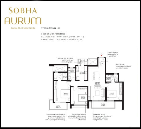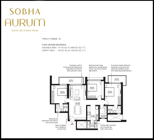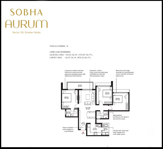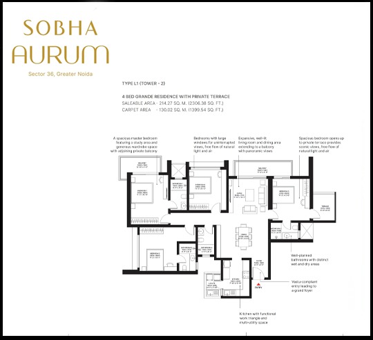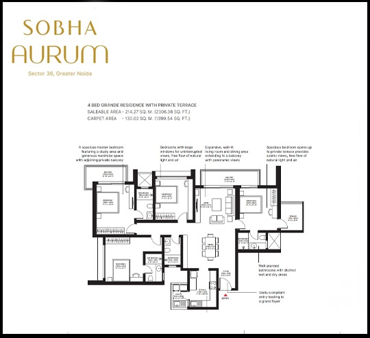 Sobha Aurum is filled with all modern lifestyle amenities and facilities including shopping plaza, banquet hall, food court, restaurant, and other crucial features like playground, indoor and outdoor games area, private terrace/garden, dance studio, jogging & cycling track, swimming pool, clubhouse and many more.